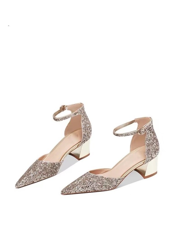 Scarpe da donna in colore albicocca con tacchi e cinture per il mercato del lavoro
